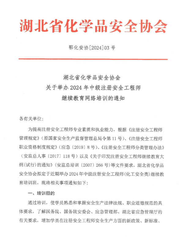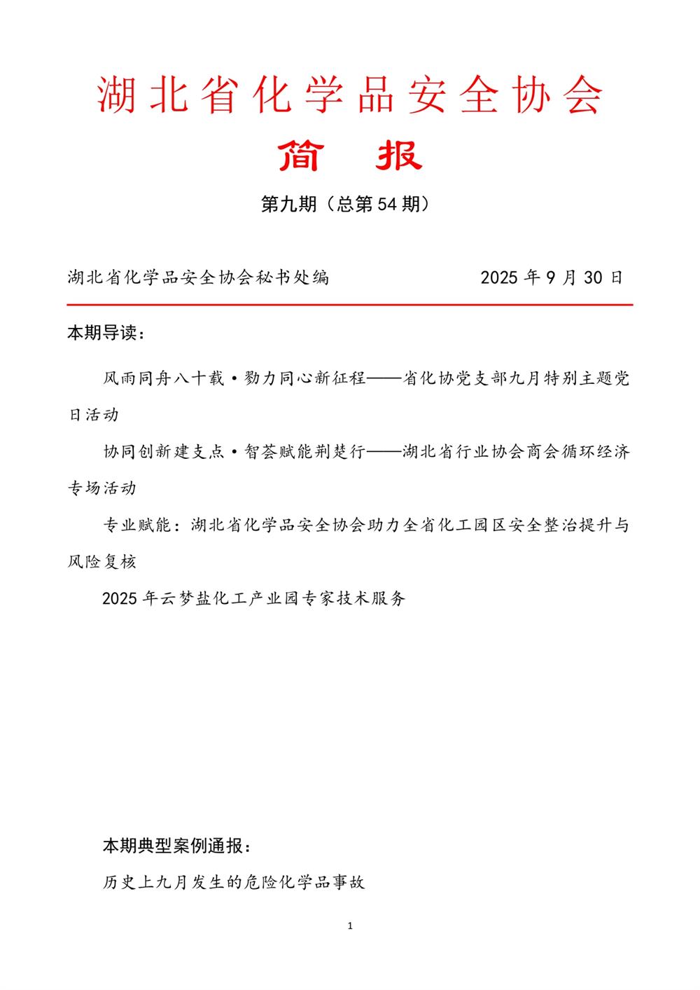 湖北省化學(xué)品安全協(xié)會(huì) 簡 報(bào) 第九期(總第54期)